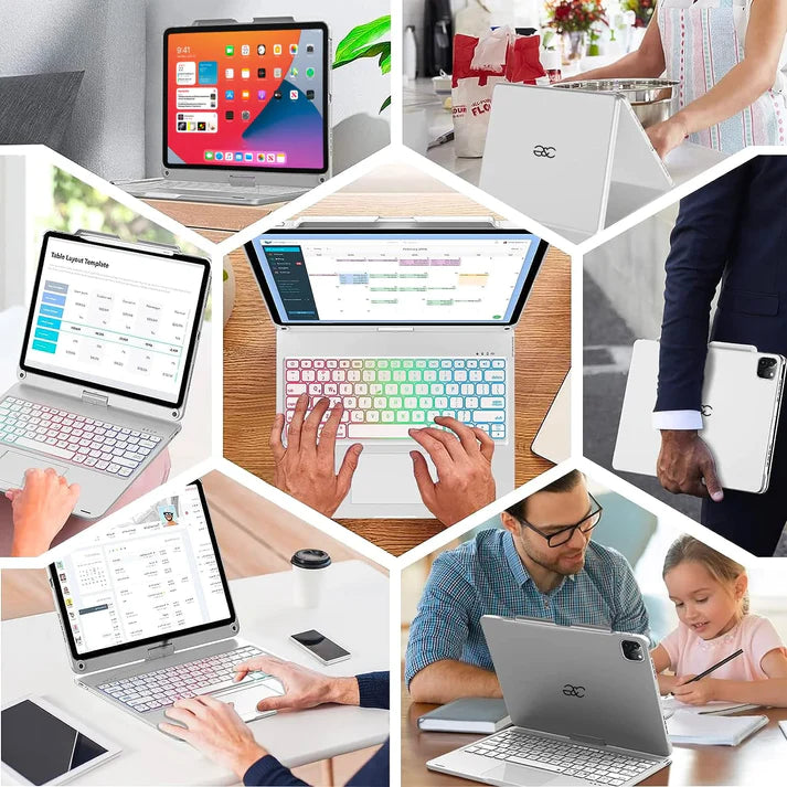 Why settle for the mundane? Elevate your workspace with the Starlight Spin Magic Keyboard. Whether for work or play, this keyboard becomes an extension of your personal style. It allows for smooth transitions between tasks and positions, blending seamlessly into your day. With every spin, it's a conversation starter, creating a more interactive and collaborative space.